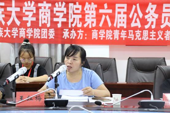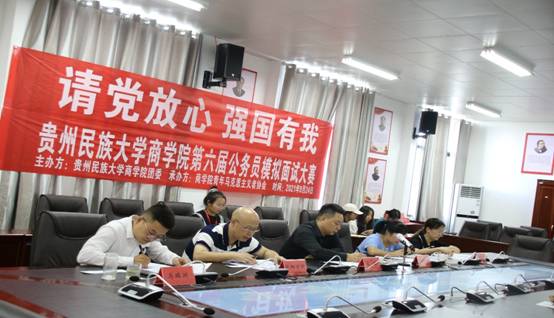 开展“请党放心,强国有我”主题活动是公司为贯彻落实习近平总书记“七一”讲话精神的重要举措,旨在为商院学子成长成才提供活动平台,引导公司学子坚定信仰,立志报国,不负时代,不负韶华,接受“强国有我”的挑选。商公司“请党放心,强国有我”系列活动之第六届模拟公务员面试大赛决赛”于2021年9月24日在商公司422会议室圆满结束,出席本次比赛的评委有公司党委书记晏超、经理王红梅、党委副书记欧阳章领、组织员胡开菊、团委负责人马瑞州。